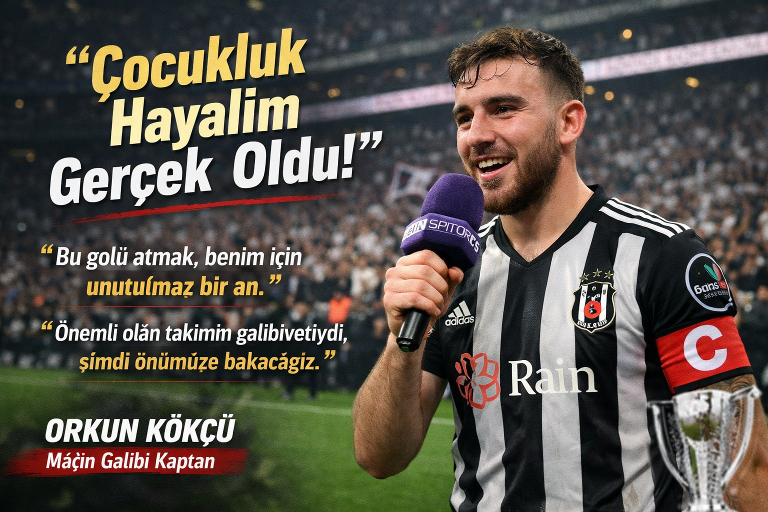 Maç sonrasında teknik ekibin ardından futbolcular da düşüncelerini paylaşırken, gecenin en dikkat çeken isimlerinden biri kuşkusuz galibiyet golünü kaydeden Orkun Kökçü oldu. Skoru 2-1’e getiren golüyle takımına üç puanı kazandıran kaptan, karşılaşmanın ardından yaşadığı duyguları beIN SPORTS’a içten ifadelerle anlattı.